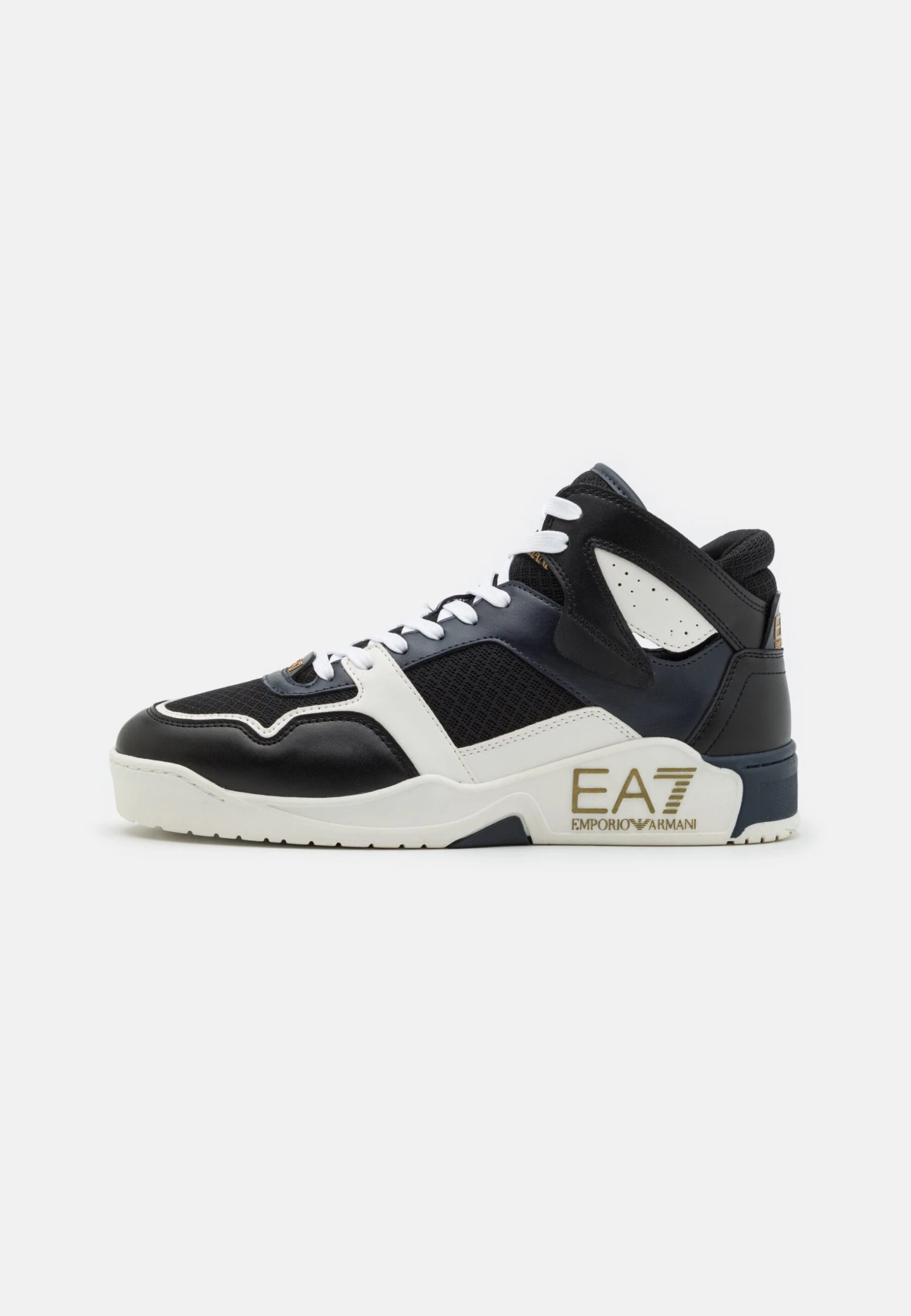 Be the first to review “EA7 Emporio Armani New Basket Unisex – High-Top Trainers – Black/Bluenotte/Gold/White” Cancel reply
