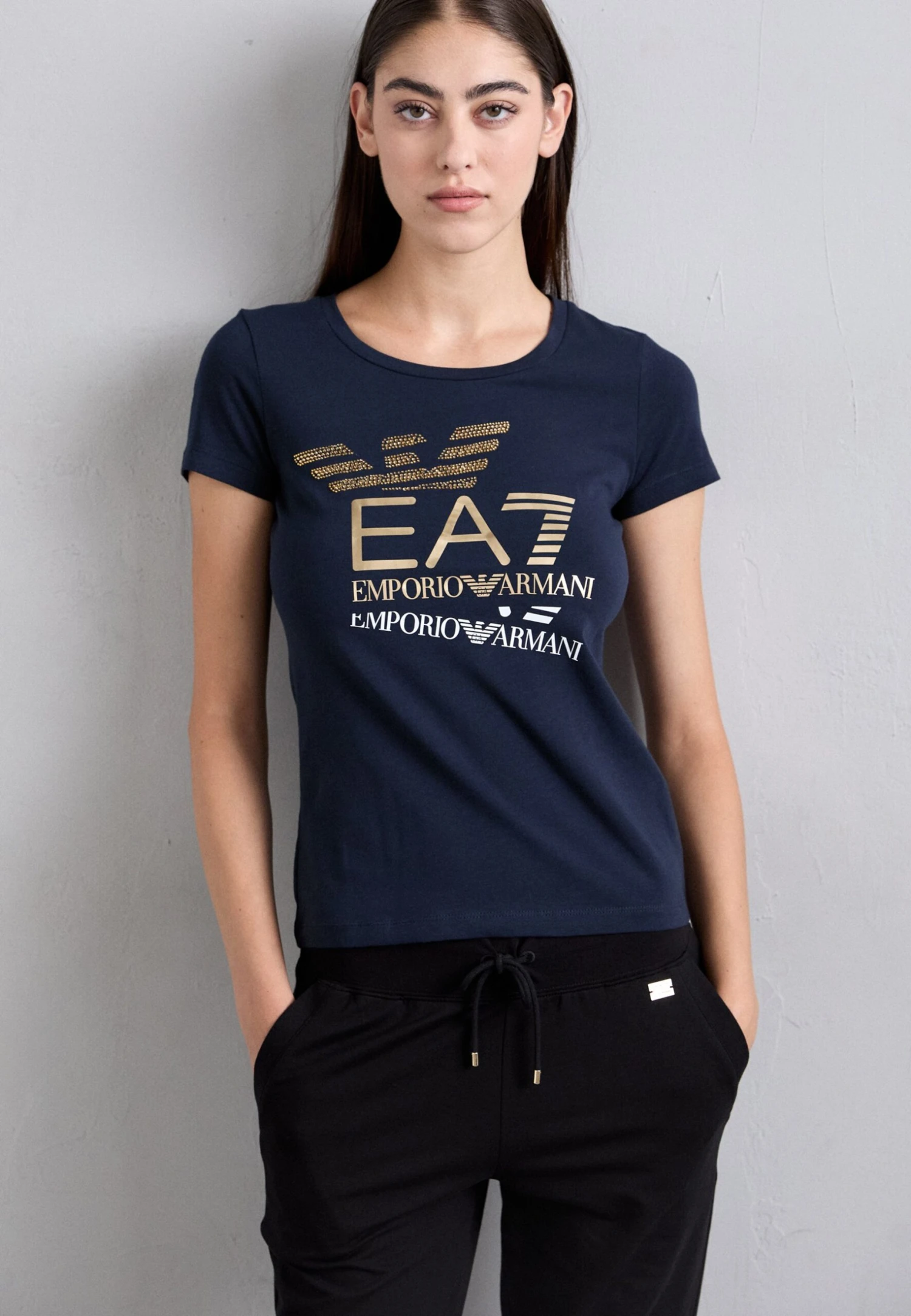 - Neckline: Crew neck
