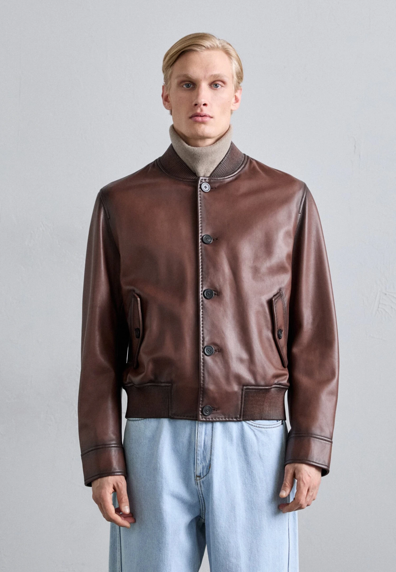 - Collar: Standing collar