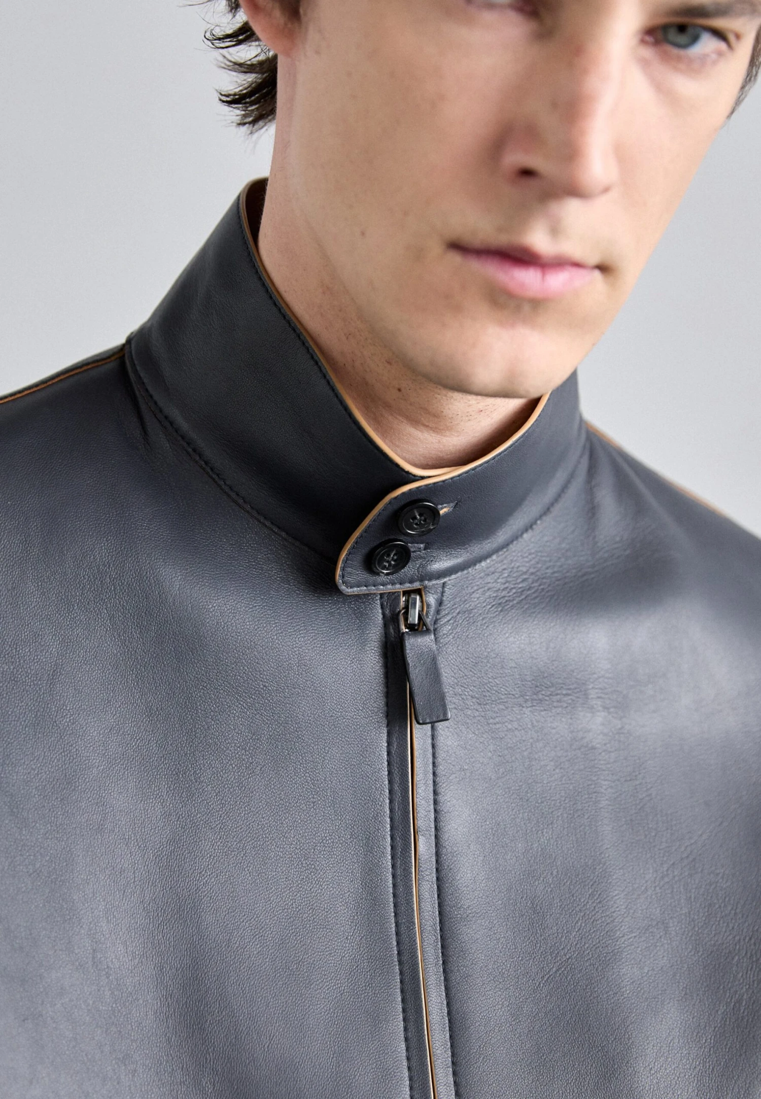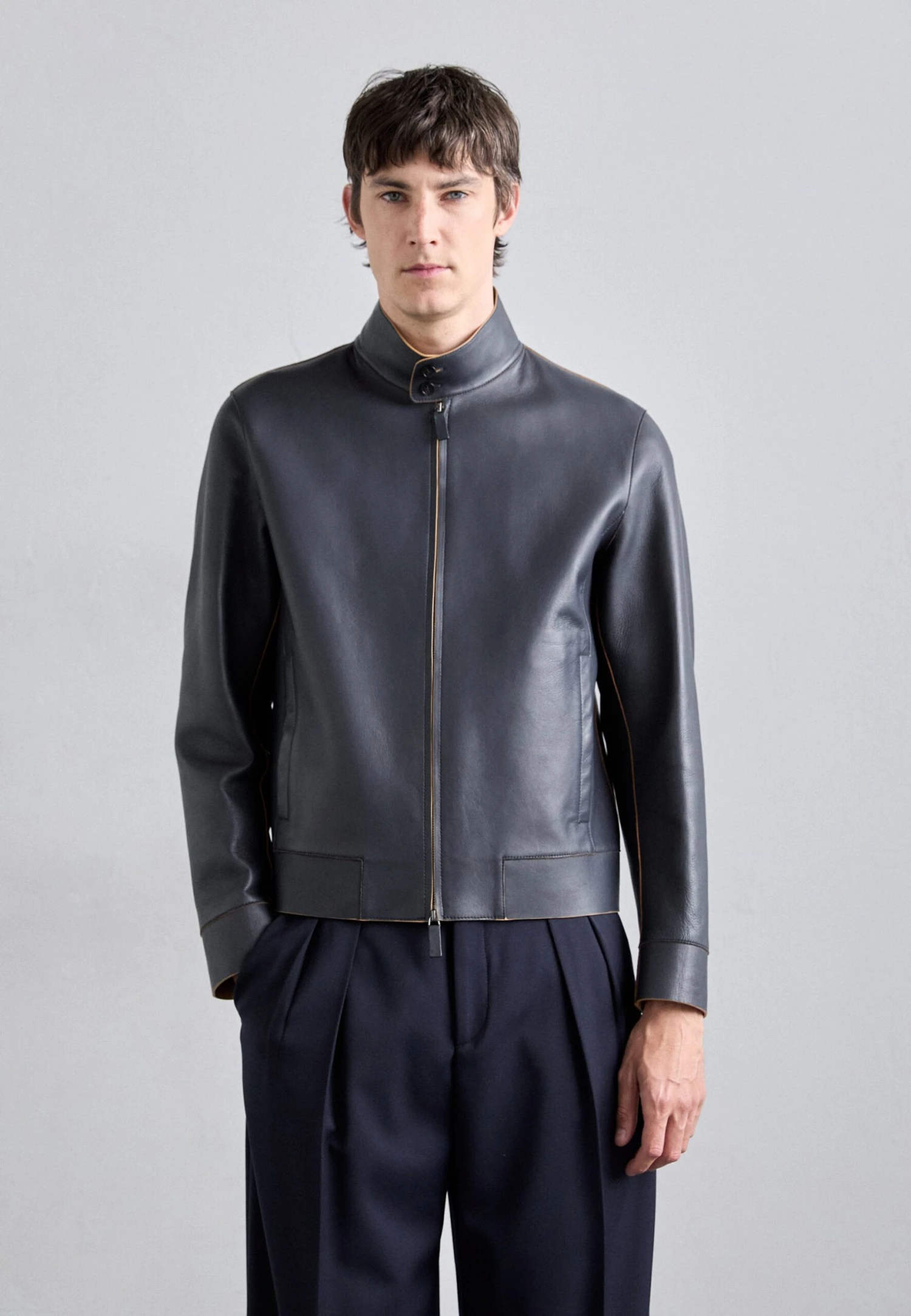 - Collar: Standing collar
