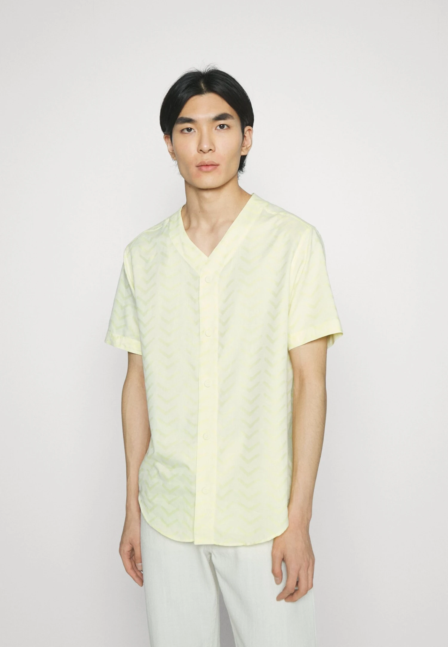 | Neckline | Low-cut v-neck |