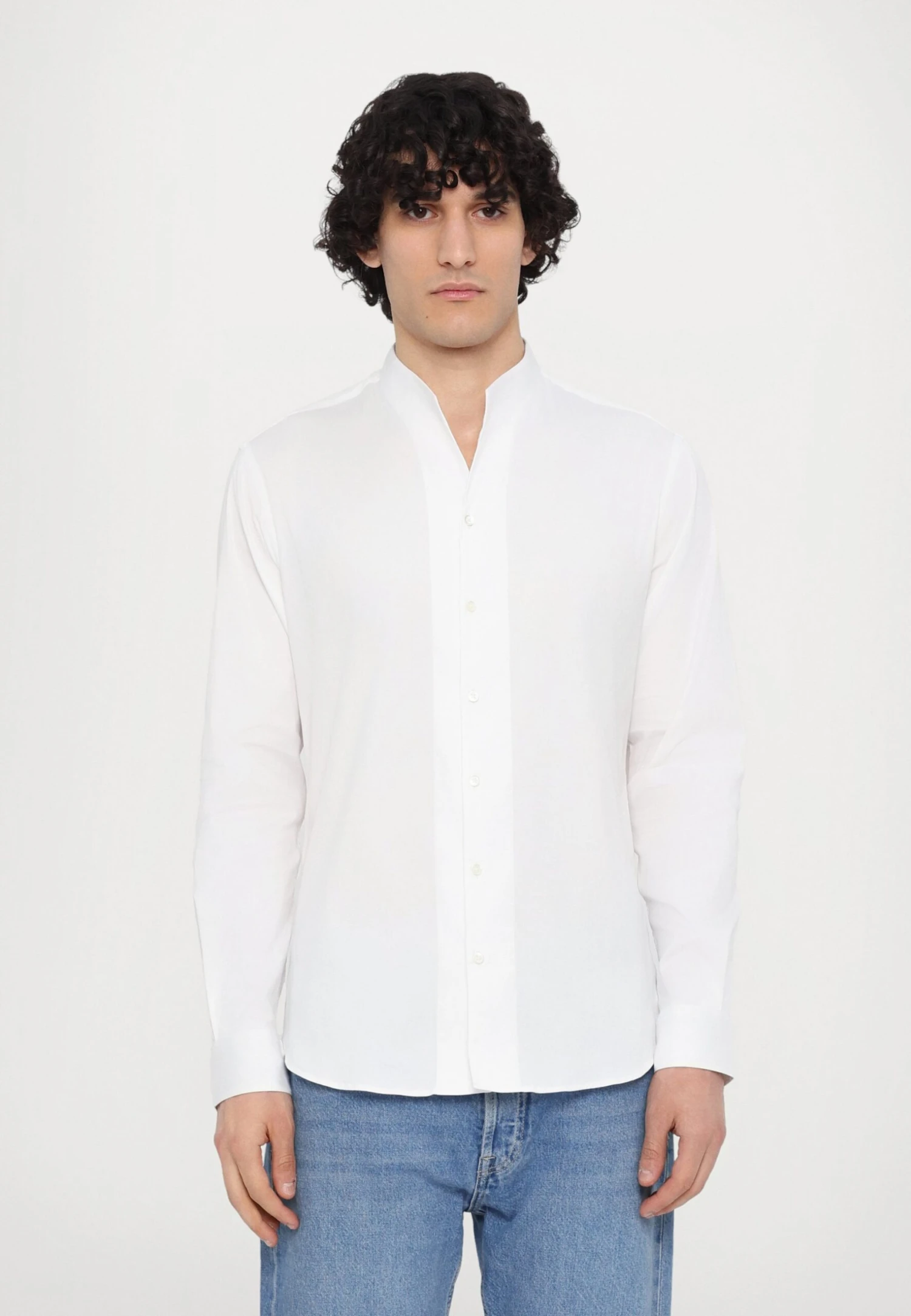 - Collar: Standing collar